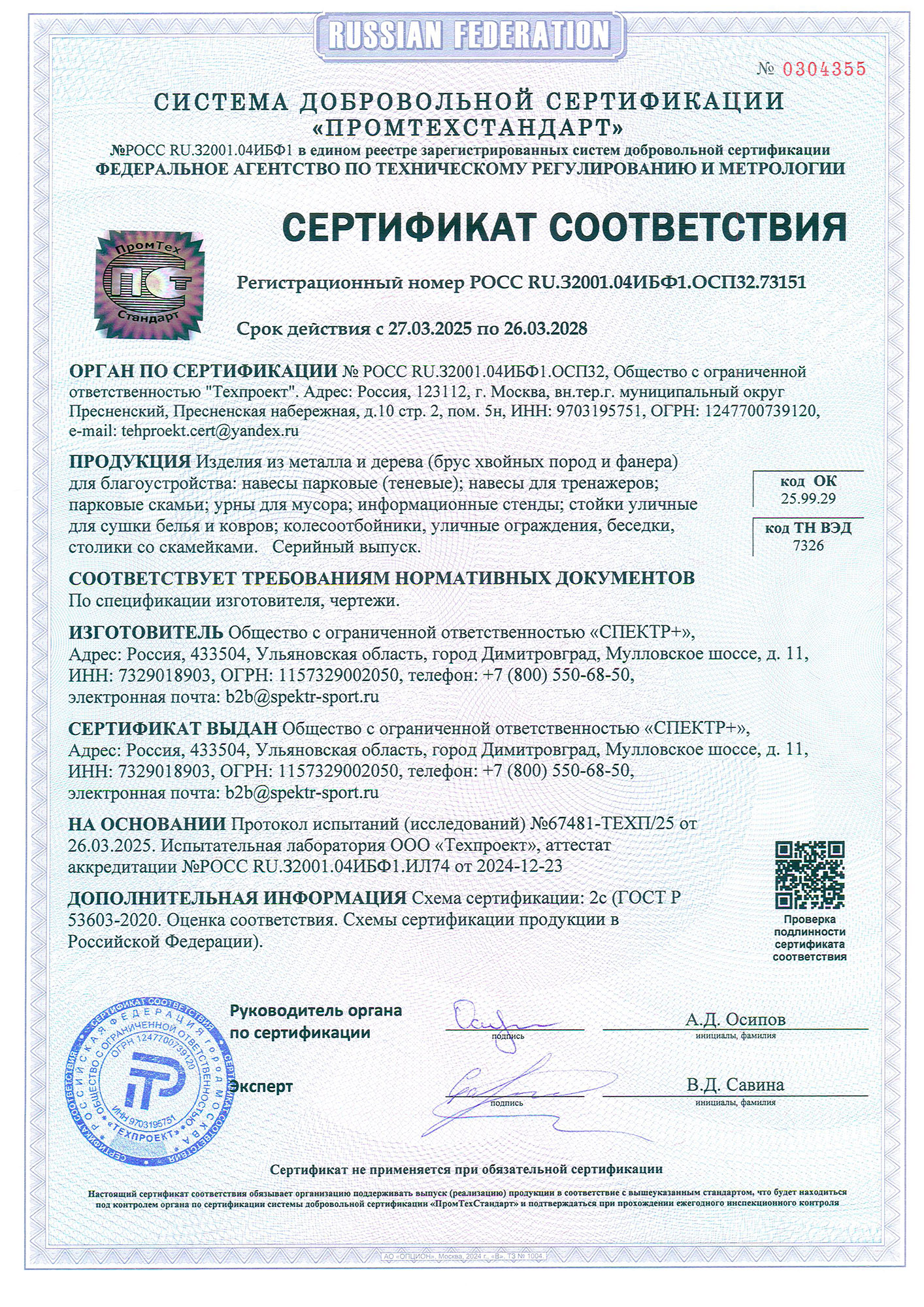 Сертификат соответствия (тренажёры, покрытия)